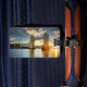 Dieses Gepäckschild zeigt ein Foto der berühmten Londoner Tower Bridge bei Sonnenuntergang. Die Rückseite kann mit Ihrem Namen und Ihrer Adresse angepasst werden.