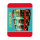 Kühlschrankmagnet mit horizontalem Design zeigt ein Foto digital behandelt der ehemaligen Stil der Londoner Busse, dupliziert drei Mal auf einem Hintergrund von rot und aquamarin. Ein großartiges Souvenir aus London, um Zuhause zu nehmen oder Ihre Küche zu verstauen.