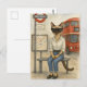 Diese charmante Postkarte besticht durch eine siamesische Katze, die geduldig für einen Doppeldeckerbus im Herzen Londons gewartet wurde. Dieses skurrile Design mit seinem berühmten roten Bus und der klassischen Londoner Kulisse prägt das Wesen des pulsierenden Londoner Stadtlebens durch die Augen einer Katze. Ein perfekter Sake für Katzenliebhaber, Londoner Liebhaber und diejenigen, die den britischen Charme lieben!