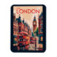 London Retro Vektor Reise Design. Vom Buckingham Palace über den Tower of London bis hin zu den Shows über die Themse River und West End bietet London eine dynamische Mischung aus Tradition und moderner Kultur.