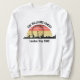 Personalized London vacation sweatshirt with a silhouette of the city attractions in front of a cool sunset including the bridge, the London Eye (Millenium Wheel), and the Big Ben clock. Cool United Kingdom trip keepsake souvenir gift.