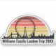 Personalisierter Laptop-Aufkleber mit einer Silhouette der Sehenswürdigkeiten der Stadt vor einem coolen Sonnenuntergang, einschließlich der Brücke, dem London Eye (Millenium Wheel) und der Big Ben Uhr. Coole Reise durch das Vereinigte Königreich bewahrt Souvenir.