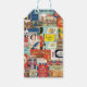 Collage der altertümlichen Postkarten und der Etiketts von London.
