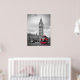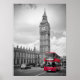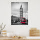 Ein Poster von Big ben und ein ikonischer roter Doppeldecker Bus in London England.
