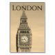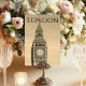 Für einen Hochzeitsempfang mit dem Thema Reisen, wo Tische entsprechen Städten. Ein sepia (braun) Foto von Big Ben (von nqooh von Pixabay, frei für kommerzielle Nutzung), mit London in schwarzen Kappen im oberen Teil.