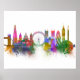 London Skyline Rainbow Bright von Fab Funky. Die Sehenswürdigkeiten Londons sind im Aquarellstil mit einem farbenfrohen Regenbogen zu sehen.