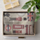 Gewebepapier mit dem Bild von Objekten, die mit London, England assoziiert sind.