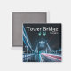 Foto der Tower Bridge über die Themse in London, Großbritannien. Eine zeitliche Belichtung mit leichten Trails in einer regnerischen Nacht.