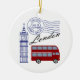 Londons ikonischer Bus mit Big Ben und Porto-Briefmarke
