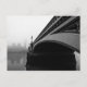 Ein auffallendes Schwarz-Weiß-Foto der Westminster Brücke und der Häuser des Parlaments in dicken Nebel.