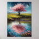 Mit diesem digitalen Kunstposter können Sie sich in eine Welt voller Ruhe und Schönheit begeben. Ein einsamer Sakura-Baum steht schön am grünen Ufer eines ruhigen Sumpfes. Seine zarten Blüten flüstern Geschichten von flüchtiger Schönheit. In diesem Meisterwerk spiegelt der klassische Ölmalstil den Zauber der Ruhe der Natur wider.