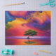 Farbenfrohe Himmel umschließen einen einzigen Tee, der in Wasser reflektiert KI KUNST VON MINX267
