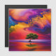 Lone Tree in Water bunter Himmel Magnetkarte