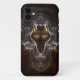 Ein Fraktal, das einem Wolfskopf auf dunklem Hintergrund ähnelt.