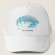 Ein Wolf (Canis lupus) durchquert in diesem stilisierten, blauen Monoton-Bild eine schneebedeckte Landschaft mit Birkenbäumen und Bergen. Fügen Sie Ihren eigenen Text hinzu. Sie können die Textfarbe und den Schriftart ändern.
