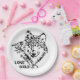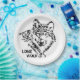 Set von acht 9" Papier-Tellern mit einem Bild einer Skizze eines einsamen Wolfs (Canis lupus) und optionalem Text auf Weiß. Siehe dazu passende Tasse und runder Sandstein Untersetzer. Sehen Sie sich die gesamte Sammlung von Nature & Wildlife Plate im ZUHAUSE-Bereich an.