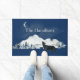 Blauer Türmatte mit Grafik eines einsamen Wolfs, der auf dem Mond mit Bergen im Hintergrund heult. Personalisieren Sie den benutzerdefinierten Text nach Ihren Bedürfnissen.