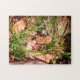 This puzzle feys hat ein Foto von a lone yellow morel in the spring woods.