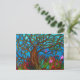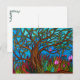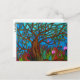 Postkarte von mir selbst zeichnend mit einem einsamen Vogel auf einem Baum in farbenfroher Umgebung.