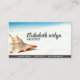 Captured in a warm film aesthetic, this shot centers on a single spiky conch shell nestled in fine white sand at the left side of the frame. Stretching beyond, smooth sand fills the majority of the view, while the distant horizon blends bright turquoise waters with a solid deep blue sky – creating a peaceful, minimalist coastal scene free of distractions.