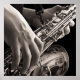 Dieses äußerst detaillierte hyperrealistische Ölgemälde von Jeff Bartels zeigt einen Saxophonspieler. Das eng zugeschnittene Schwarz-Weiß-Bild zeigt die links Hand des Mannes im Vordergrund mit seiner links Hand im Hintergrund. Starkes Licht und Schatten sowie die enge Beschneidung verleihen diesem Gemälde ein eindrucksvolles und dramatisches Gefühl.
