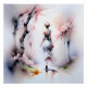 Eine Frau geht durch einen Wald mit Kirschbäumen in Blüte. Die sanften Farben und die sanfte Atmosphäre schaffen ein Gefühl der Ruhe. Ideal für Zuhause- oder Bürodekoration.