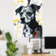Schöner Hund in Grau und Weiß. Der Hintergrund ist weiß mit gelbgrauen und roten Spritzern. Großartiges Stück für jeden, oder ein Zwinger oder eine Tierklinik.
