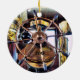 Skyline von Long Beach, Kalifornien bei Dämmerung auf der Vorderseite dieses zweiseitigen Schmuckstücks. Ein grafisches Detailbild des Lenkrads auf dem Schiff der Königin Maria auf der Rückseite. Ändern Sie das Jahresdatum in das Jahr Ihrer Wahl.