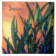 Diese 6" Keramik Tile zeigt Originalbilder von ZoeSPEAK, einem Foto von langen grünen Blätter, das tiefe blaue Schatten auf eine rustikal orangefarbene Wand wirft und durch einen gelben Sonnenschein hervorgehoben wird. Das Bild hat eine warme südwestliche Stimmung, und die Blätter gehören zu mexikanischen Petunien. Es gibt einen optionalen Namenstext, der Set für Sie ist, zu personalisieren oder zu löschen, wenn Sie es vorziehen.