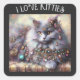 Long Hair Gray Kitty Cat Tragen Schmucksteine Quadratischer Aufkleber
