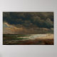 Ein Sandstrand verläuft entlang der Küste von Long Island, wo sanfte Wellen unter einem zwielichtigen Himmel über das Ufer ragen. In der Ferne treiben Segelschiffe den Horizont entlang, ihre Segel fangen die sanfte Brise. In der Nähe des Wassers, Figuren laufen und Erholung, verlassend Fußspuren im Sand. Der Strand ist mit Algen, Treibholz und verstreuten Felsen übersät, und die Atmosphäre ist ruhig, salzig Luft und Meeresrhythmus.