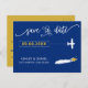 Sie haben einen besonderen Ort für Ihre Hochzeit gewählt. Jetzt ist es an der Zeit, es mit dieser Keepsake-Save the Date Postkarte zu feiern, mit einer Silhouette-Karte und einem winzigen Flugzeug, das zu Ihrem Ziel führt. Um das Herz an den Ort Ihrer Hochzeit zu bringen, klicken Sie auf Personalisieren und dann auf "Weiter anpassen".