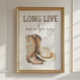 Add a touch of rustic charm to your baby boy's nursery with our Cowboy Nursery Print, featuring watercolor cowboy hat and boots and the quote "Long Live Cowboys". Perfect for western themed decor and a thoughtful baby shower gift for horse loving families.