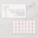 This coquette & cute girl's baby shower books for baby/please bring a book/book request enclosure card features a long pink bow/ribbon. The reverse side features a white background with pink gingham plaids/checks. Personalize it for your needs. You can find matching products at my store.