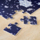 Ein 3D-nah-Up einer Schneeflocke vor dem Hintergrund fallender Flocken in einem dunklen Winternachthimmel.