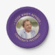 Fügen Sie eine elegante Touch zu den Dekorationen des Ruhestands Party mit maßgeschneiderten Foto lila und Gold runden Papier Teller. Das Bild und alle Formulierungen auf dieser Vorlage sind einfach anzupassen. (IMAGE PLACEMENT TIP: Eine einfache Möglichkeit, ein Foto genau so zu positionieren, wie Sie es gewollt haben, besteht darin, es einzuschneiden, bevor Sie es auf die Zazzle-Website hochladen.) Das moderne lila und goldene Design besticht durch ein Foto des Rentners und die Retro-Vintage Deko-Typografie. Bitte beachten Sie, dass Gold farblich gedruckt ist, nicht metallische Folie. Es kann für jeden Anlass angepasst werden, oder um ein beliebtes Angebot oder lustiges Sprichwort einzubinden. Das minimale klassische Design hat ein berufliches Aussehen, das für ihn oder für sie geeignet ist, einen pensionierten Mitarbeiter, Mitarbeiter, Freund oder Familienmitglied. Herzlichen Glückwunsch und Glückwunsch zum Ruhestand!