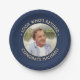 Fügen Sie eine elegante Touch zu den Dekorationen des Ruhestands Party mit maßgeschneiderten Foto marineblau und goldfarbenen runden Papier Teller. Das Bild und alle Formulierungen auf dieser Vorlage sind einfach anzupassen. (IMAGE PLACEMENT TIP: Eine einfache Möglichkeit, ein Foto genau so zu positionieren, wie Sie es gewollt haben, besteht darin, es einzuschneiden, bevor Sie es auf die Zazzle-Website hochladen.) Das moderne Marineblau- und Golddesign besticht durch ein Foto der Vintagen Deko-Typografie im Ruhestand und Retro-Stil. Bitte beachten Sie, dass Gold farblich gedruckt ist, nicht metallische Folie. Es kann für jeden Anlass angepasst werden, oder um ein beliebtes Angebot oder lustiges Sprichwort einzubinden. Das minimale klassische Design hat ein berufliches Aussehen, das für ihn oder für sie geeignet ist, einen pensionierten Mitarbeiter, Mitarbeiter, Freund oder Familienmitglied. Herzlichen Glückwunsch und Glückwunsch zum Ruhestand!