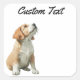 Looking Up Puppy-2 | Personalized Custom Text Quadratischer Aufkleber