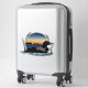 A loon on a lake with a sunset and cattails in a backdrop of blue