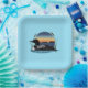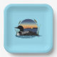 Ein Pop in einem See mit Sonnenuntergang und Liegen in einem blauen Hintergrund