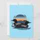 Ein Paar Löwen auf dem See mit einem Sonnenuntergang und ein paar Kater dahinter.