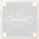 Für Reiter und Pferdefreunde bietet dieser Untersetzer eine Trompe l'oeil-Illustration eines goldenen Ringsnaffelstückes zwischen Monogramm und Namen.