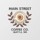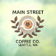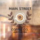 Ein auffallendes Kaffeedesign mit Kaffee-Tasse, Bohnen und einem organischen, blättrigen Lorbeerhintergrund. Perfekt für Marketing und Branding des lokalen Cafés.