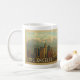 Los Angeles California Design im Vintage Travel Stil mit einem City Skyline Blick mit Bergen hinter.