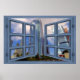 Los Angeles Skyline Blue 6 Pane Open Window Poster