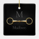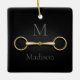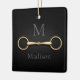 Für Reiter und Pferdeliebhaber bietet dieses Ornament eine Trompe l'oeil-Illustration eines goldenen Ringsnaffelstückes zwischen Monogramm und Namen.