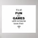 Jeder, der online arbeitet oder spielt, wird sich damit beschäftigen - Es ist alles Spaß und Spiele, bis jemand sein WiFi-Signal verliert! Das Poster für alle, die sich für Spaß und Spiele auf das Internet verlassen! Dieses Design ist auch auf T - Shirt, Hüten, Karten, Aufklebern, Maus Matten, und eine Vielzahl von anderen Geschenken erhältlich! Auch in anderen Farben erhältlich.