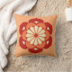 Japanisches Mandalaentwurf Throwkissen, das eine stylized Lotos-Blume darstellt und Reinheit, das Angelegenheitenwecken und Treue - Blume in der tiefen Mandarine symbolisiert, mittleres Orange und Sahne auf einem weichen orange Pastellhintergrund