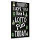 Lottery Scratch Ticket LOTTO Spaß Zwischenablage. Geldschilder und Taschen sorgen dafür, dass Sie auf dieser schwarzen Zwischenablage mit dem Niedlichen Sprichwort, "Ich hoffe, Sie haben heute einen LOTTO-Spaß." Jetzt gewinnen Sie groß!