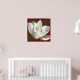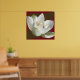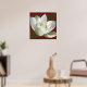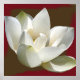 weißer Lotus mit braunem Hintergrund und rotem Akzent